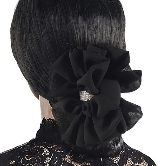 Jumbo Chiffon Ruffle Hair Clip Bow w/Rhinestone F815