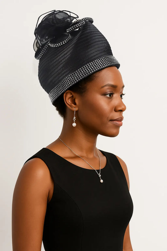 Luxury Pillbox Hat with Flowers & Crystals – Elegant Church Hat for Weddings, Tea Parties, & Formal Events SD715