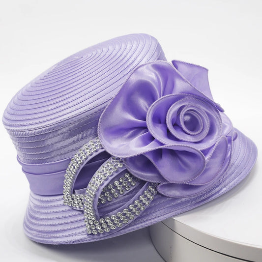 Lavender Satin Rose Church Hat with Rhinestone Trim SD725