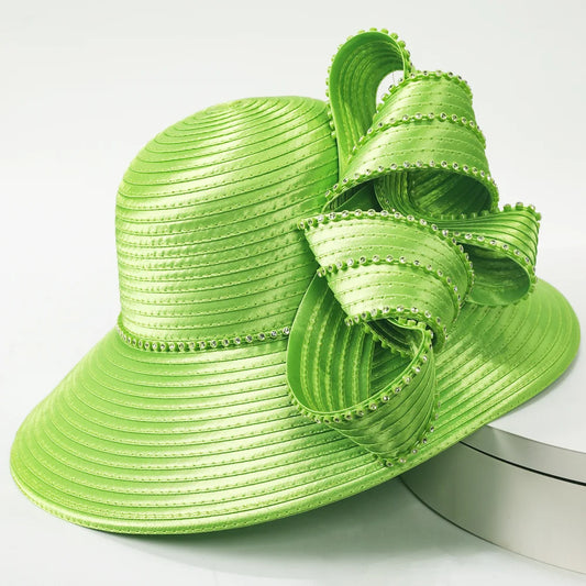 Women Church Hat with Bow and Rhinestone Accents SD721