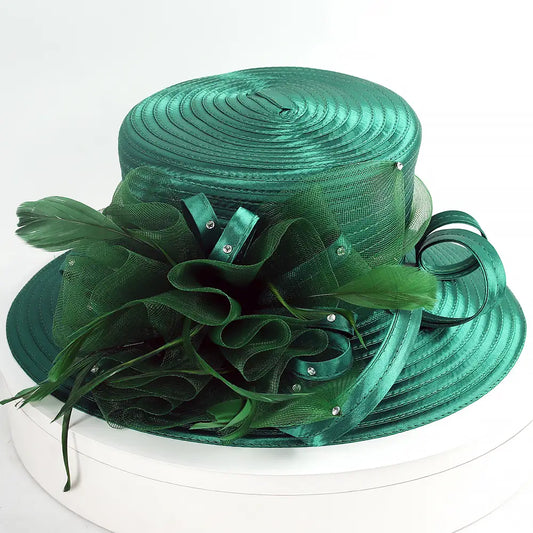 Graceful Green Wide Brim Church Hat with Feather Bow SD801
