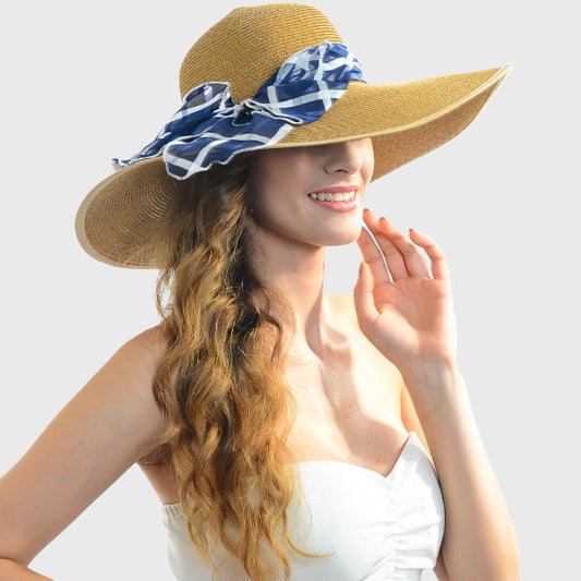 Women Wide Brim Straw Beach Hat with Scarf W230