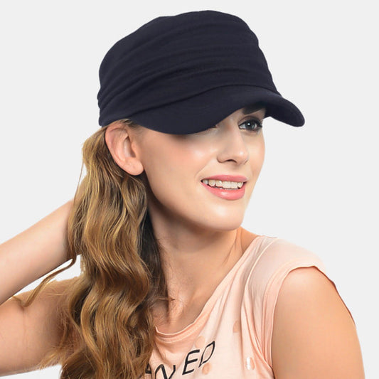Women Messy Bun Ponytail Visor Beanie Hat BQ328
